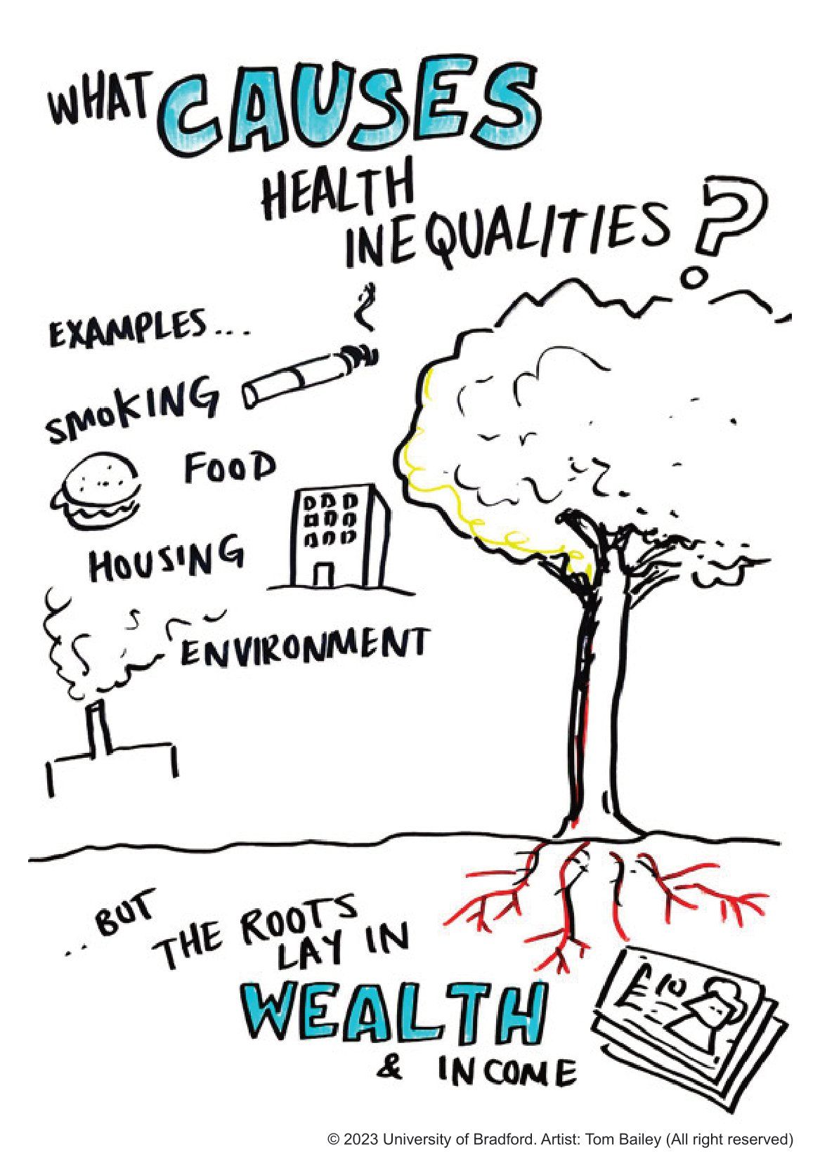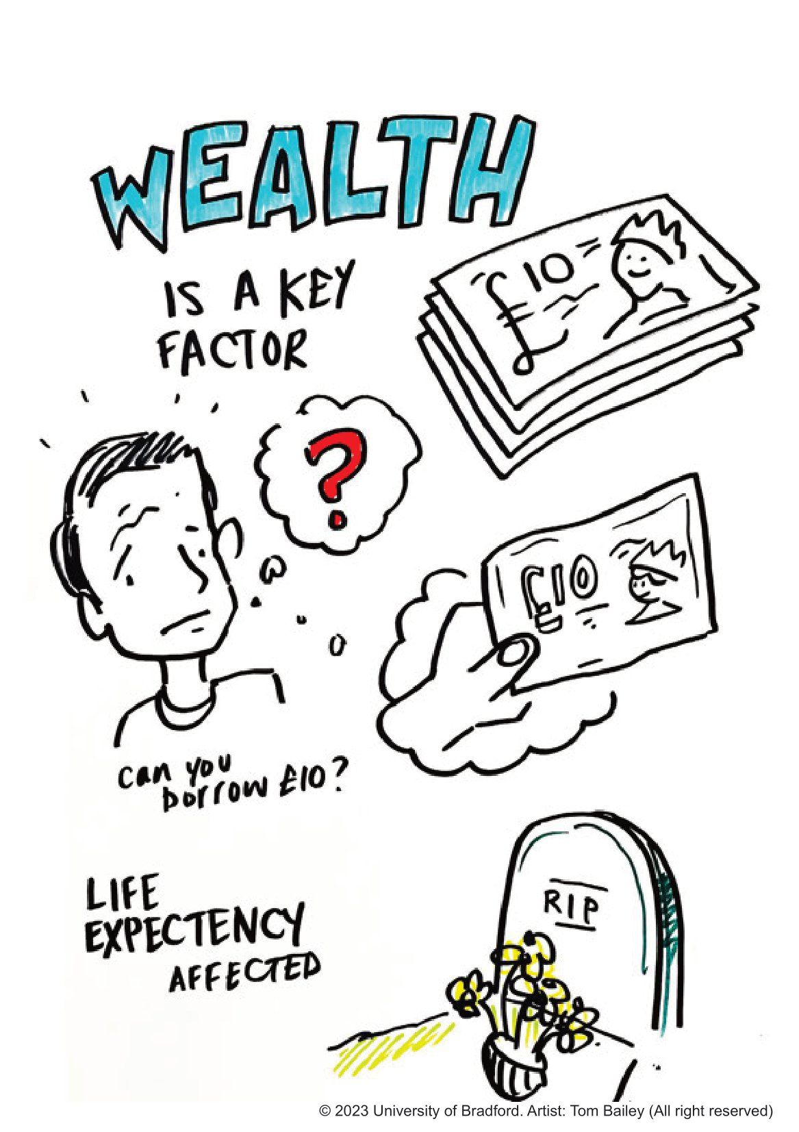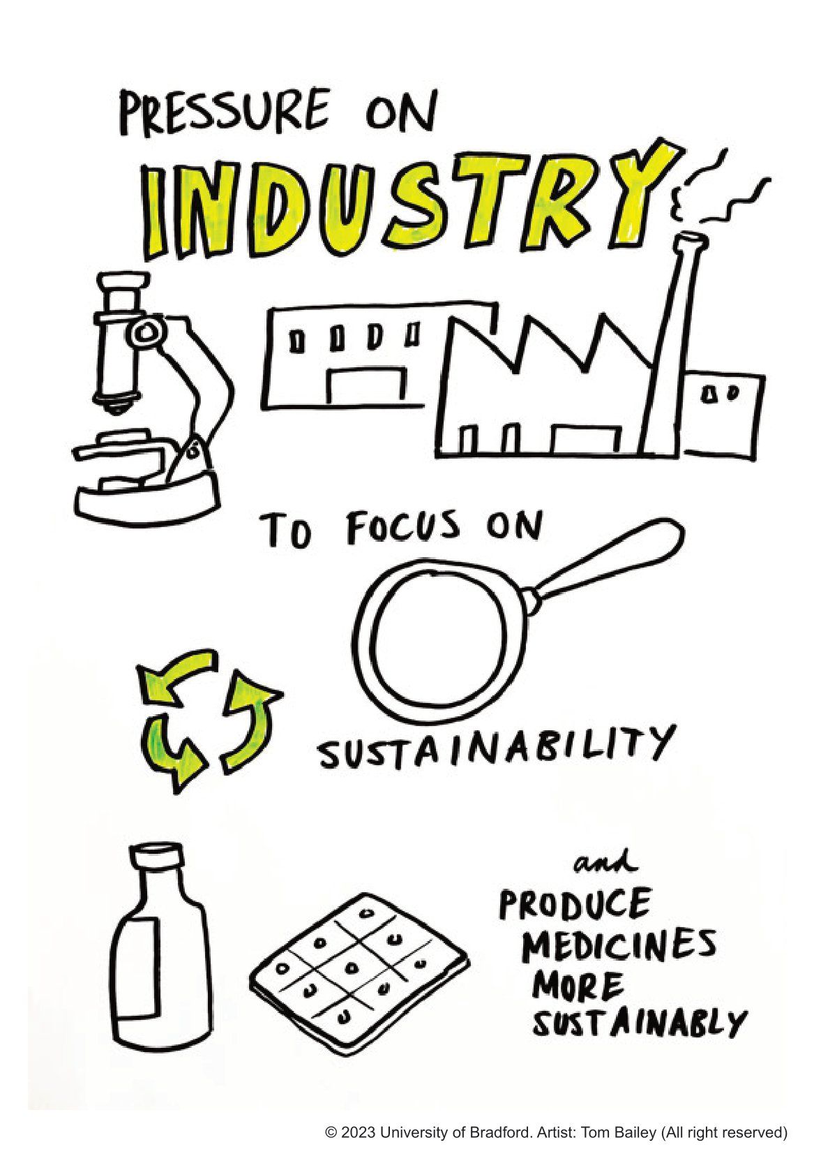 Creative images from Tom Bailey at the University of Bradford's Health Service Research and Pharmacy practice (HSRPP) 2023 conference.